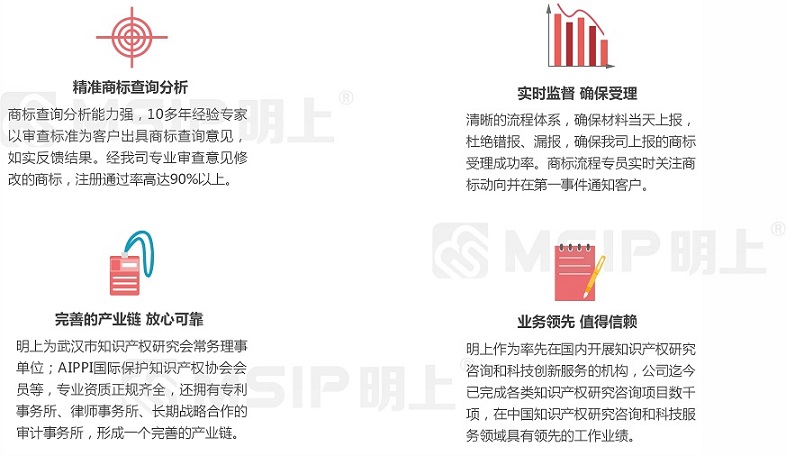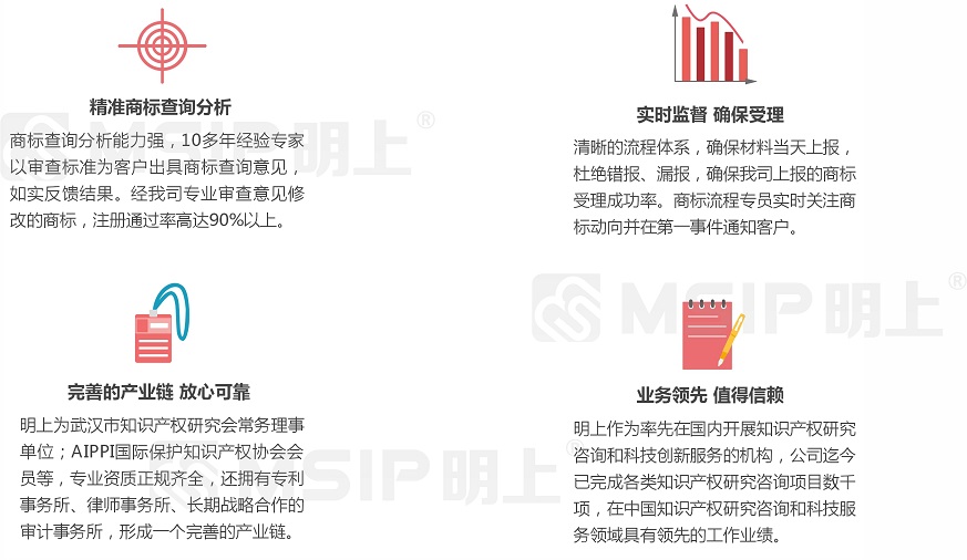 1、專業(yè)知識產(chǎn)權(quán)背景  明上利用自己專業(yè)化的知識產(chǎn)權(quán)背景,為企業(yè)知識產(chǎn)權(quán)領(lǐng)域業(yè)務(wù)提供專業(yè)解決、代理申報(bào)服務(wù)并完善申報(bào)工作中關(guān)于企業(yè)自主知識產(chǎn)權(quán)的專業(yè)問題。