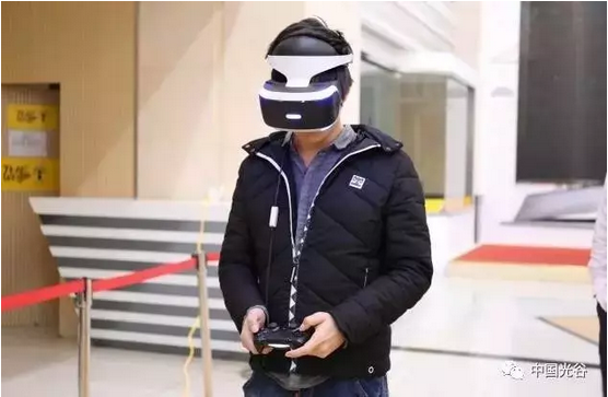 體驗(yàn)者正在感受光谷企業(yè)鈴空游戲的VR技術(shù)