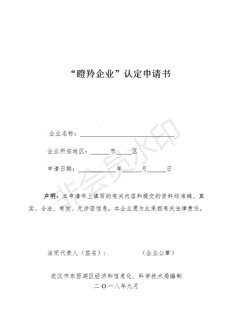 1. 臨空港開發(fā)區(qū)(東西湖區(qū))瞪羚企業(yè)認(rèn)定申請(qǐng)書;